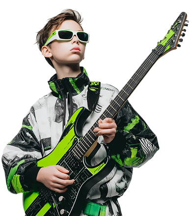 На первых занятиях мы делаем гитару «своей» с рук, посадки и чистого звука. Разбираем, как устроен инструмент, как работают струны и медиатор, как ставить левую и правую руку, чтобы пальцы не боролись с грифом, а управляли им. Дальше собираем ритм и первые аккордовые схемы, подключаем простые риффы и мелодии, чтобы ребёнок мог играть музыку, которую хочется показывать дома и на сцене.